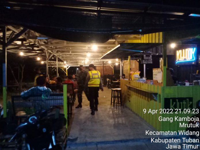 Widang – Patroli Prokes difokuskan di Pusat tempat tongkrongan kaum muda mudi pada akhir pekan, Sabtu (09/04/22).
