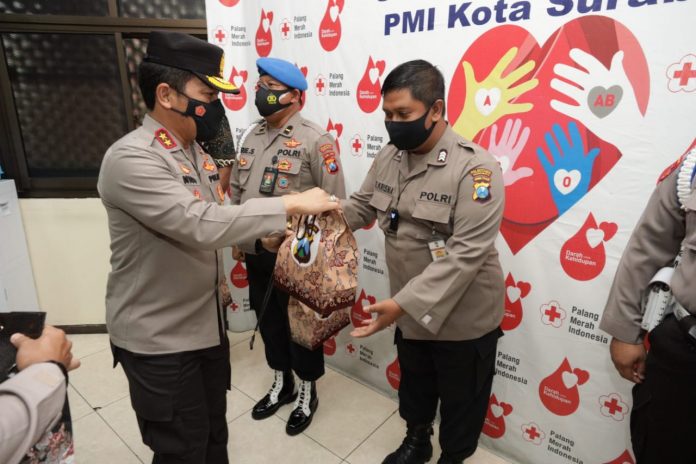 wacananews.com – Kapolda Jawa Timur, Irjen Pol Nico Afinta, bersama Pejabat Utama Polda Jatim dan Kabid Humas Polda Jatim, Kombes Pol Gatot Repli Handoko, Jumat pagi (5/2/2021) melakukan pengecekan anggota, yang sedang donor konvalesen di Palang Merah Indonesia (PMI) Surabaya, Jalan Embong Ploso, Surabaya, Jawa Timur.