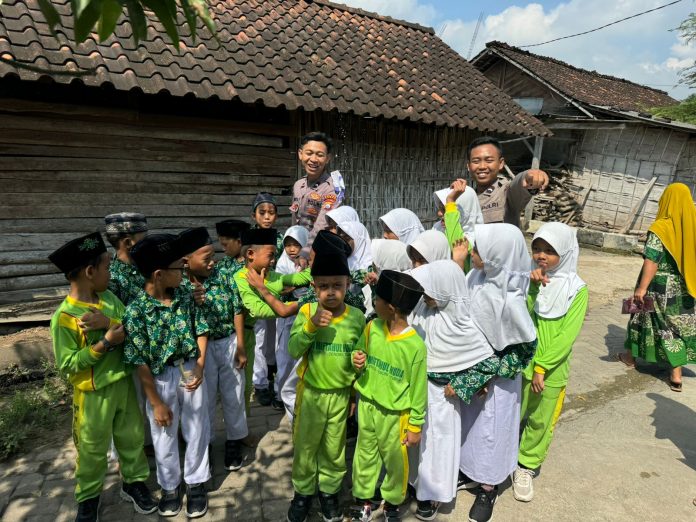 Senori – Anggota Bhabinkamtibmas Polsek Senori Polres Tuban Polda Jatim Bripda Rifky Syahroni dan Bripda Mahata Flora Gimnasti melaksanakan patroli sambang di MI Nurul Huda Desa Jatisari Kec. Senori, Kamis (16/4/2026).
