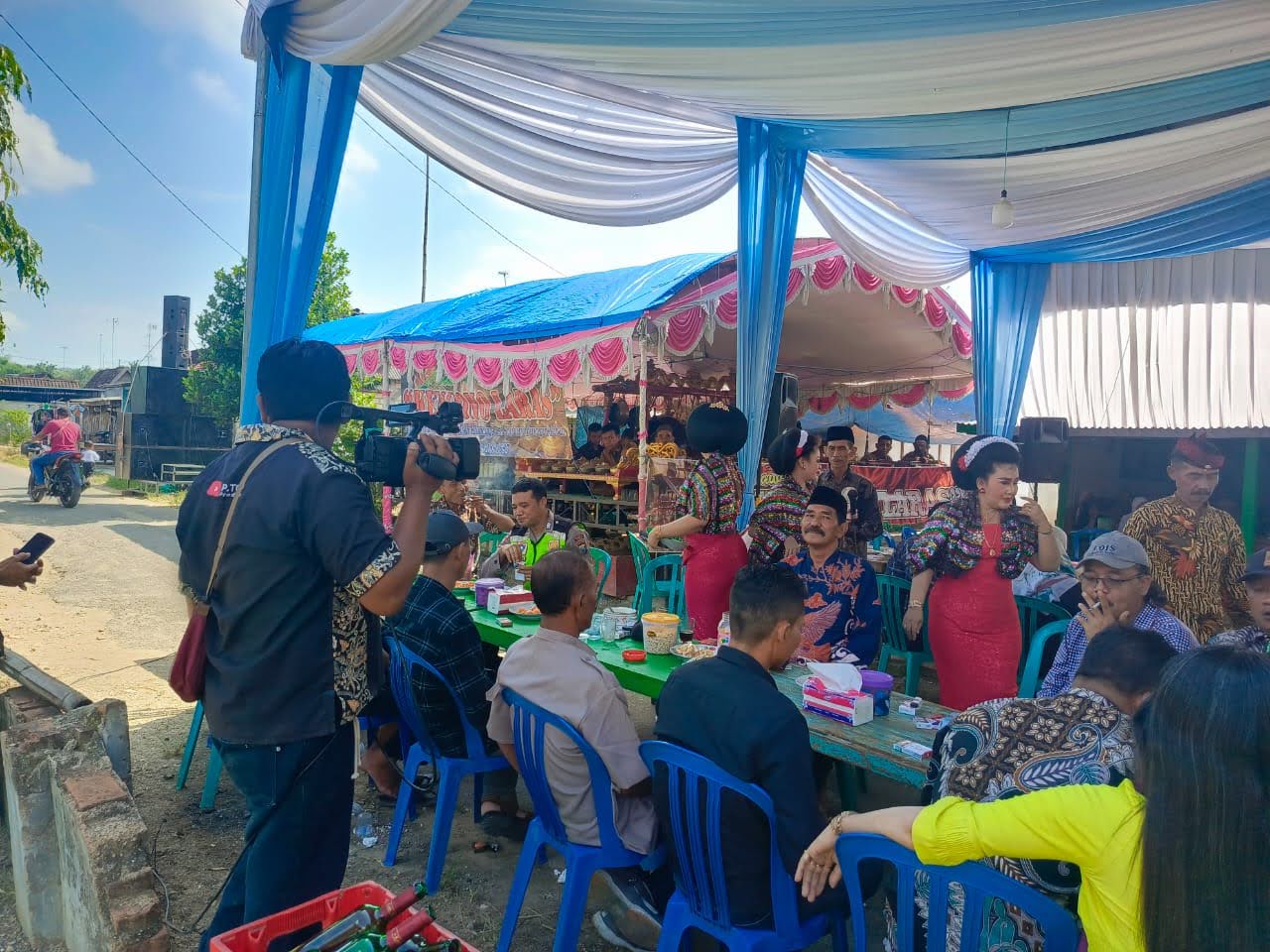 Senori – Personil Polmas Polsek Senori Polres Tuban Polda Jatim Bripka Putut Aris bersama anggota Babinsa Serka Sholikin melaksanakan pengamanan kegiatan pentas seni tradisional langen tayub dalam rangka hajat nikahan yang diselenggarakan oleh warga Dsn, Giwang Desa Rayung Kecamatan Senori, Rabu (15/4/2026).
