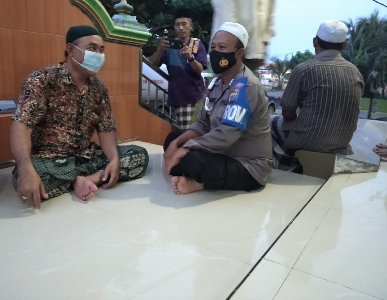 wacananews.com-polrestubanpoldajatim Anggota Polsek Bancar melaksanakan kegiatan dialogis kamtibmas bersama jama’ah masjid sesaat menjalankan sholat Magrib berjamaah di teras masjid Baitul Atiq Ds Sukolilo Kecamatan Bancar Tuban Jatim. 16 Maret 2021.
