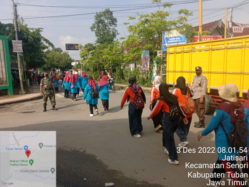 Untuk menjamin keamanan dan kelancaran jalan sehat yang mengambil strat dan finish di halaman SDN 1 Sendang. Kapolsek Senori Polres Tuban Polda Jatim AKP Ali Kanapi, S.H., menurunkan anggotanya untuk memberikan pengamanan kegiatan jalan sehat yang melewati rute jalan utama Kecamatan Senori.