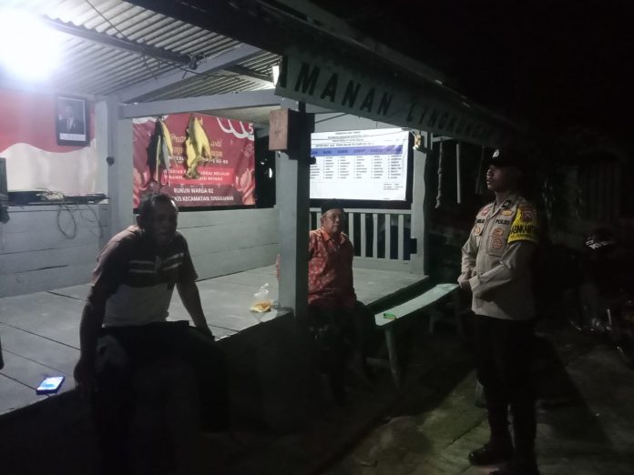 Anggota Polsek Singgahan Polres Tuban kembali melaksanakan kegiatan sambang kamtibmas dengan menyambangi masyarakat yang sedang melaksanakan ronda malam di Pos Kamling, kamis (26/02/2025).