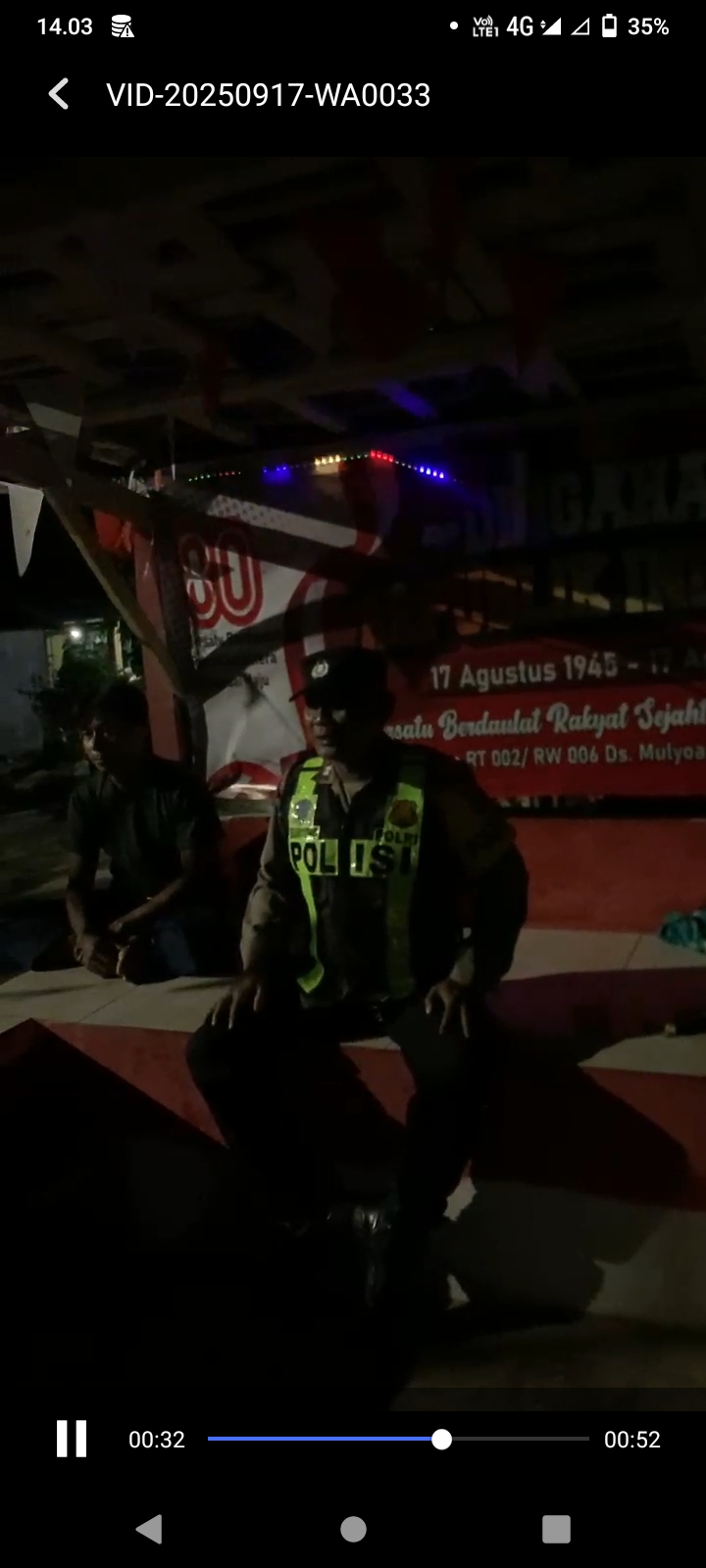 Anggota Polsek Singgahan Polres Tuban kembali melaksanakan kegiatan sambang kamtibmas dengan menyambangi masyarakat yang sedang melaksanakan ronda malam di Pos Kamling, Rabu (08/10/2025).