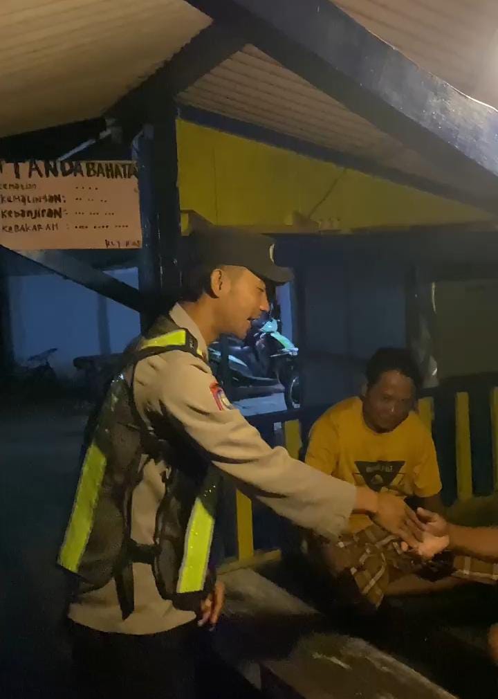 Anggota Polsek Singgahan Polres Tuban kembali melaksanakan kegiatan sambang kamtibmas dengan menyambangi masyarakat yang sedang melaksanakan ronda malam di Pos Kamling, Kamis (06/11/2025).