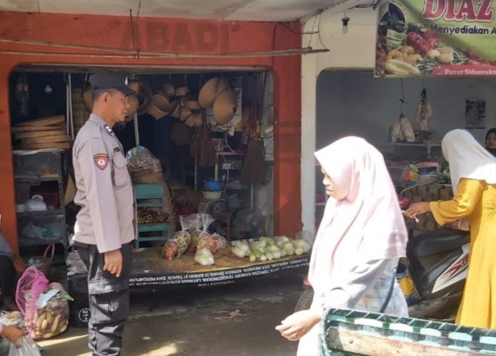 melaksanakan patroli di pertokoan pasar Desa Sidomukti, Kec. Kenduruan,