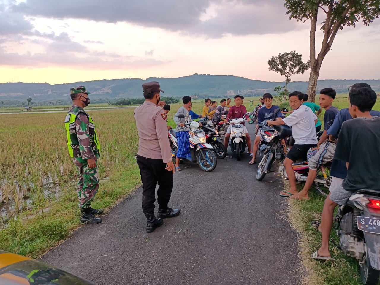 wacananews.com – PolresTubanJatim Polsek Rengel Polres Tuban bersama dengan Koramil Rengel membubarkan kerumunan para pemuda di Jalan Persawahan Desa Banjaragung Kecamatan Rengel Kabupaten Tuban. Selasa Sore, (21/4/2021).