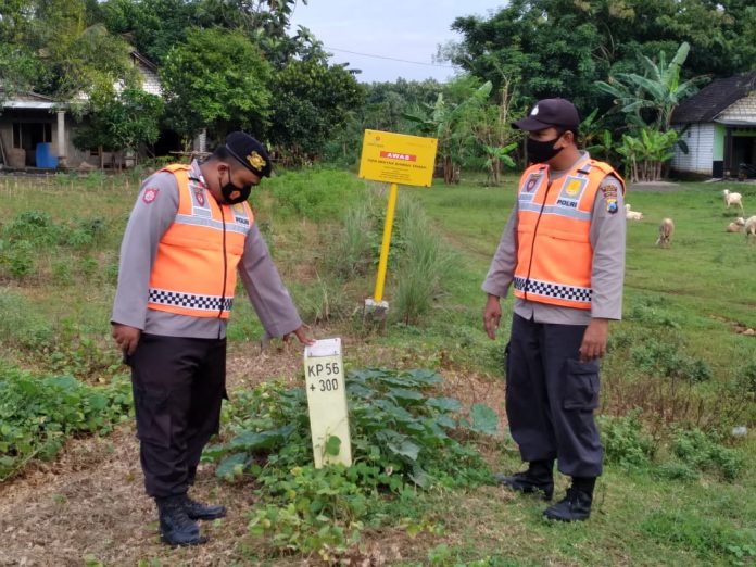 wacananews.com-polrestubanpoldajatim Anggota Polsek Plumpang Bripka Purwanto dan Bripka Mirza Yusuf yang tersprin Pam Sus Exson Mobile Pertamina melaksanakan patroli  di jalur pipa di wilayah kecamatan plumpang (Kamis, 18/03/2021)
