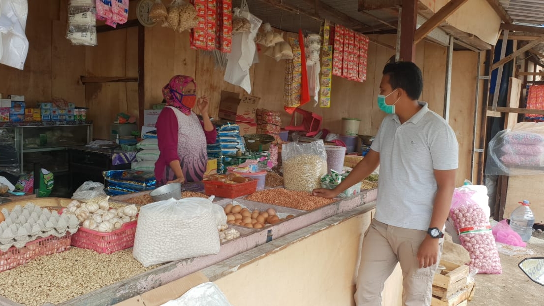 sekaligus mengecek harga sembako di Toko kelontongan yang berada dipasar