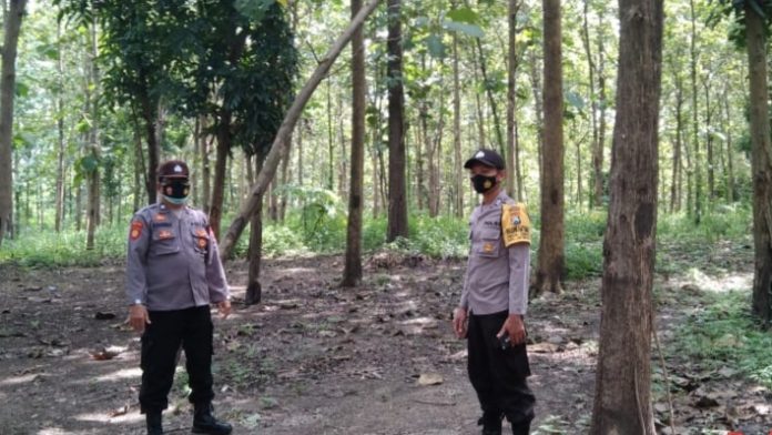 wacananews.com-polrestubanpoldajatim Guna mengantisipasi terjadinya pencurian pohon jati dikawasan hutan di wilayah hukum Polsek Jatirogo Polres Tuban, Anggota Polsek Jatirogo melaksanakan patroli di kawasan hutan RPH Sadang BKPH Sekaran KPH Jatirogo Desa Ngepon Kecamatan Jatirogo Kabupaten Tuban. Minggu, (7/3/2021).Â