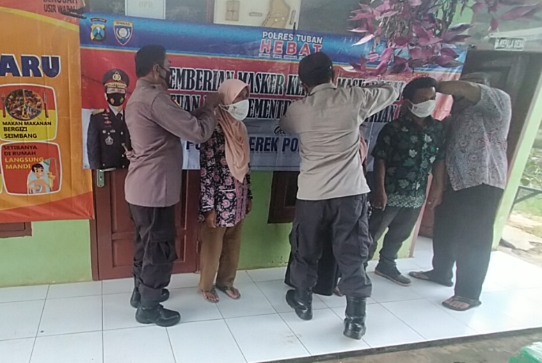 Dengan melaksanakan sambang di balai desa, Kapolsek Kerek bersama anggota kemudian memberikan beberapa paket masker kepada kepala Desa Margorejo serta secara simbolis KaPolsek dan anggota membagikan kepada tiga orang perangkat desa untuk selanjutnya masker tersebut nantinya dibagikan oleh Kepala Desa kepada perangkat desa dan warga desa.