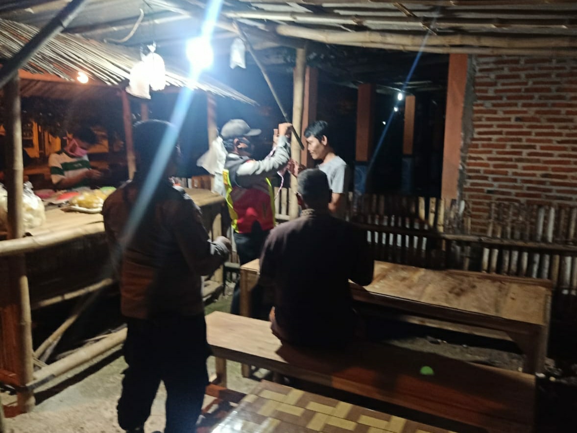 Nampak terlihat petugas giat Yustisi Protokol Kesehatan berada di salah satu warung kopi Desa Sidomukti, sekaligus memberikan Himbauan kepada warga masyarakat yang berada di warung kopi untuk disiplin menerapakan Protokol Kesehatan 5M, utamanya memakai masker.