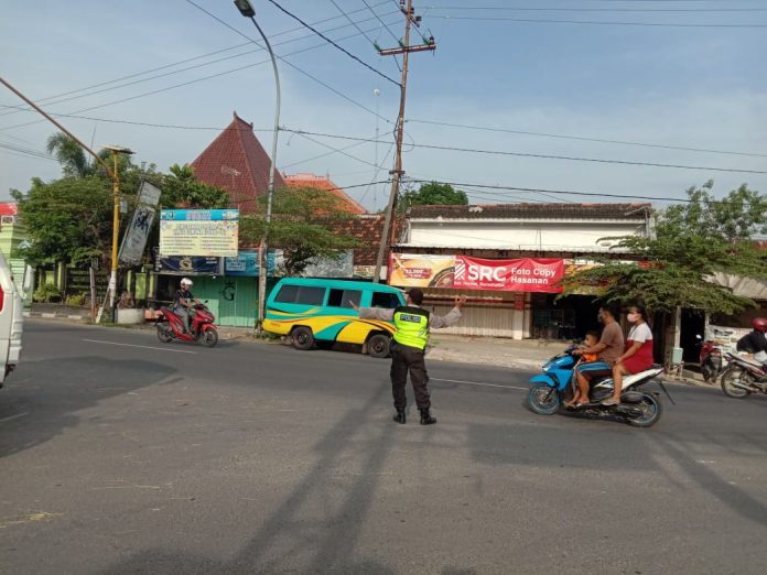wacananews.com – PolresTubanJatim Dalam upaya mengantisipasi dan mencegah kemacetan arus lalu lintas Anggota Polsek Plumpang, Polres Tuban Polda Jawa Timur Aiptu Dwi Sampurno, S.H. melaksanakan pengamanan dan pengaturan lalulintas Di pertigaan kecamatan Plumpang. Rabu, (05/05/2021).