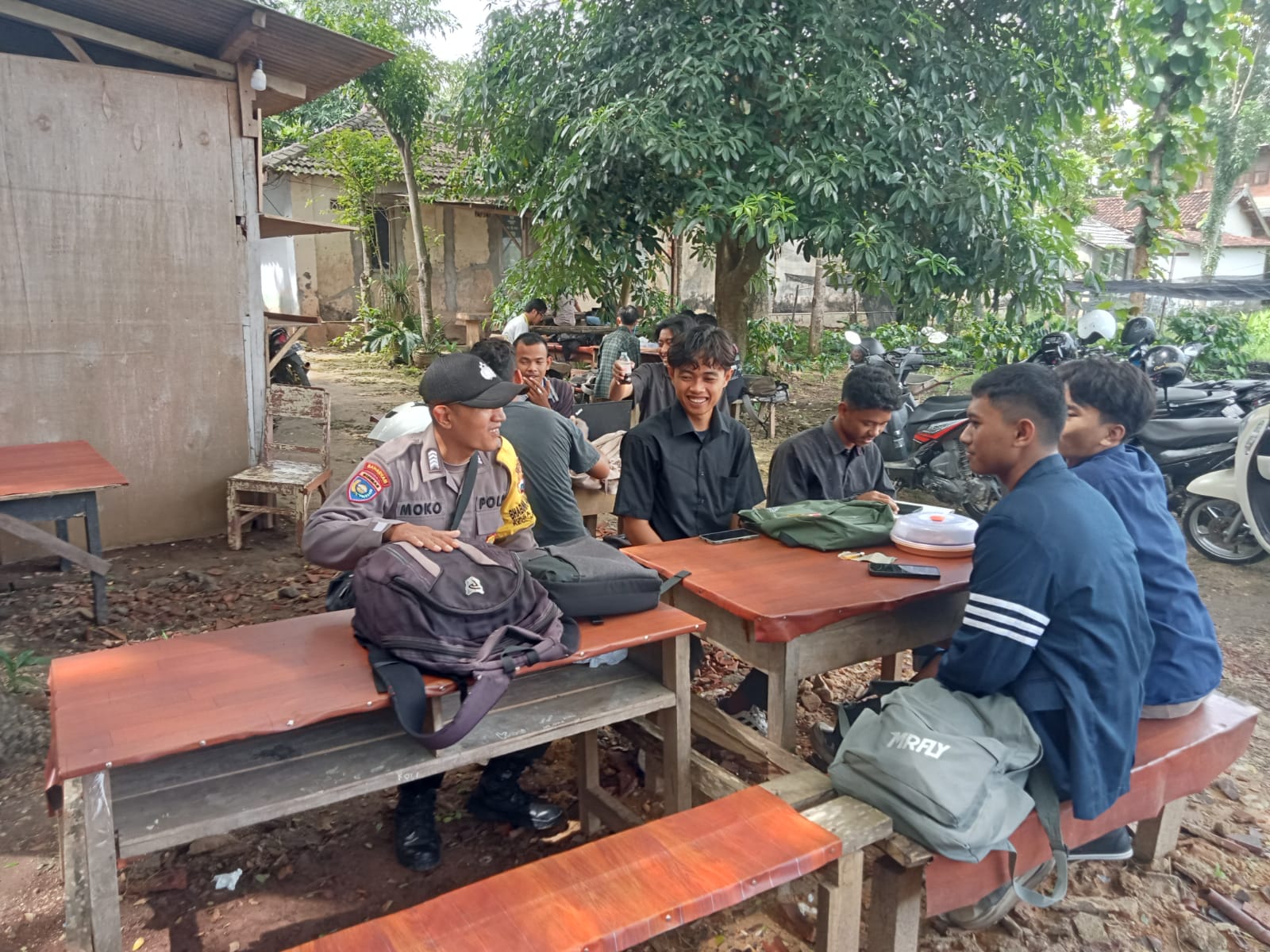 bersama sejumlah tokoh masyarakat yang sedang duduk santai Dan Bripka