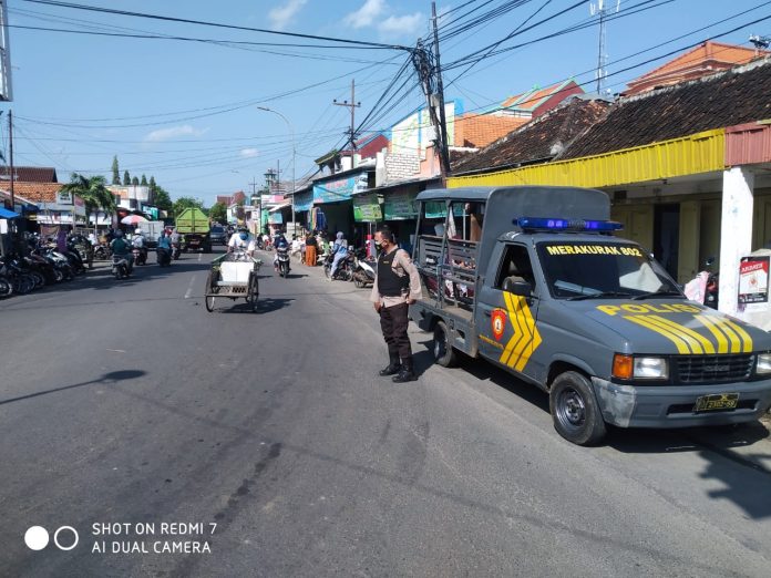 Merakurak Polres Tuban sedang melaksanakan pengaturan arus lalu lintas