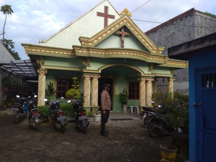 Polsek Bangilan Polres Tuban Polda Jatim – Anggota patroli dipimpin Ka SPKT I Aiptu Sugiono bersama dengan anggota melaksanakan pengamanan di Gereja-gereja di Kecamatan Bangilan khususnya giat Ibadah Minggu pagi, Minggu (16/5/2021). “Patroli di Gereja ini bertujuan untuk memberikan rasa aman dan nyaman bagi jemaah Gereja, setiap hari minggu anggota Polsek Bangilan selalu laksanakan patroli di Gereja, Salah satunya yaitu di Gereja GPDI Bangilan “, ucap Aiptu Sugiono setelah Patroli.