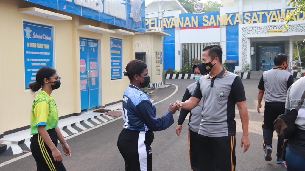 wacananews.com – Tuban – Upaya memberikan rasa nyaman kepada Putra Putri Papua yang berada di Tuban terus dilakukan oleh Kepolisian Resor Tuban, setelah beberapa waktu lalu diajak makan siang bersama, kali ini mereka diundang untuk olahraga bersama, Jum’at (09/04/2021)