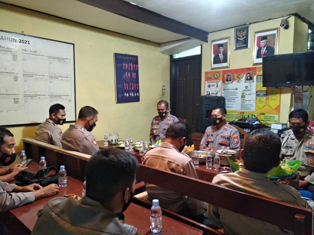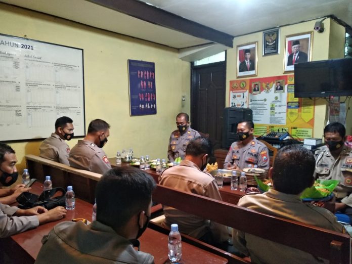 Kegiatan Doa Bersama dan selamatan di gelar di ruang tengah Mapolsek. Hadir dalam kegiatan tersebut Kapolsek AKP Totok Wijanarko, S.Pd., Waka Polsek IPTU Ali Mas’ud, S.H., para Kanit dan Anggota.