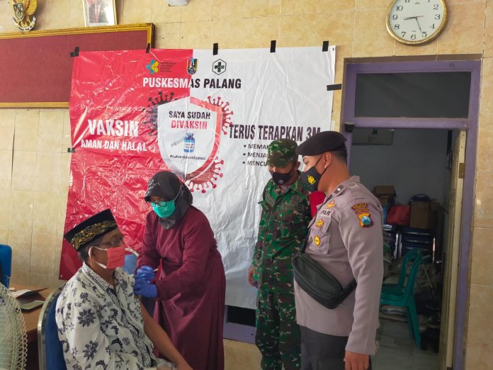 wacananews.com – PolresTubanJatim Polres Tuban, Aipda Edi Hariyanto anggota Polsek Palang Polres Tuban selaku Bhabinkamtibmas Desa Pliwetan bersama Babinsa Desa Pliwetan Melaksanakan pengamanan dan pengawasan kegiatan Vaksinasi Covid 19 warga masyarakat Desa Pliwetan yang berusia manula yang dilaksanakan di Balai Desa Pliwetan Kecamatan Palang Kabupaten Tuban, pada hari Senin ( 03/05/2021).