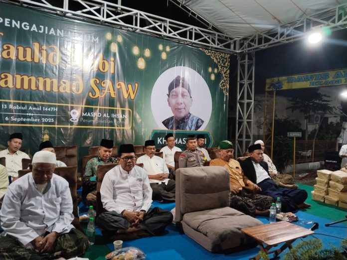 Tuban – Bhabinkamtibmas Desa Kembangbilo Polsek Tuban menghadiri acara pengajian umum dalam rangka peringatan Maulid Nabi Muhammad SAW 1447 H yang digelar di Masjid Al Ihsan, Perum Siwalan Permai, Sabtu (6/9/2025) malam.