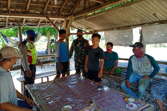 Kepada warga, aparat keamanan dengan cara yang humanis menghimbau untuk menjaga jarak aman minimal 1,6 meter untuk mencegah penularan Virus yang belum ditemukan obatnya tersebut.