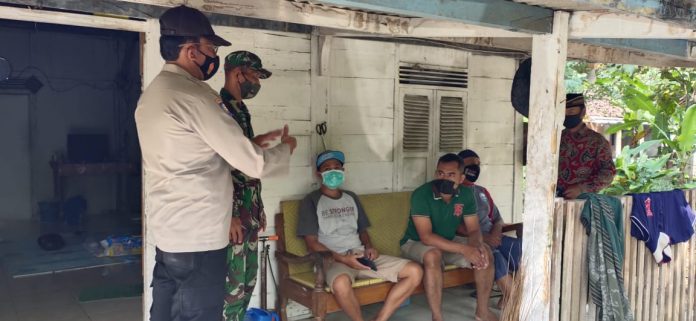 Anggota Bhabinkamtibmas Desa Leran Polsek Senori Polres Tuban Polda Jawa Timur Aiptu Ahmad Lakin bersama Babinsa dan pengurus PPKM Desa Leran memberikan edukasi Protokol Kesehatan (Prokes) kepada warga Desa Leran Kecamatan Senori secara door to door, Selasa (11/5/2021).