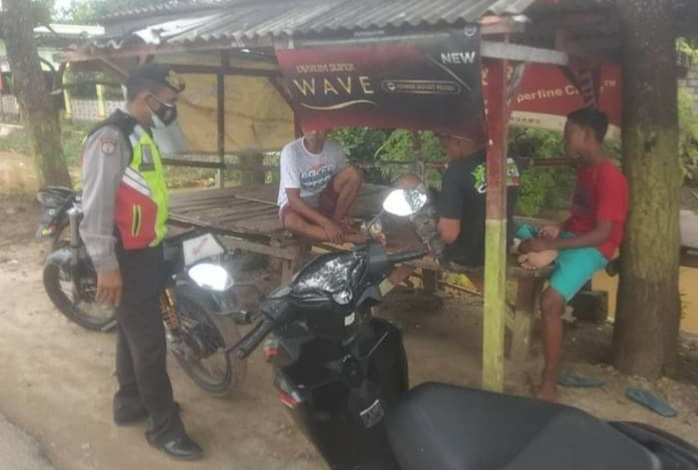 Dalam kesempatan tersebut Bhabinkamtibmas Dialogis tentang protokol kesehatan dalam rangka pencegahan penyebaran virus Covid-19.