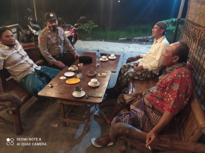 Bhabinkamtibmas Polsek Widang Aiptu M. Lusbri menemui tokoh agama dan tokoh masyarakat saat melakukan sambang desa binaannya, Kamis (01/04/2021) malam.