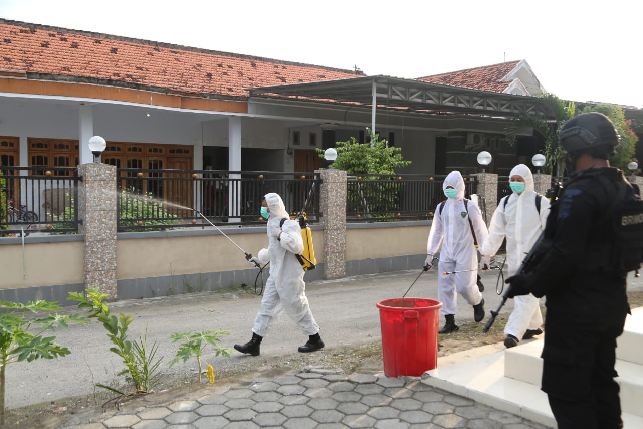Dansat Brimob Polda Jatim, Kombes Pol Amostian menyebutkan, bahwa hari ini Rabu, (9/7/2021) sore, melaksanakan kegiatan pembagian masker, pembagian sembako, serta melakukan penyemprotan disinfektan di rumah warga serta tempat ibadah (Masjid).