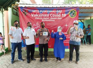 KAPOLSEK KEREK DAN ANGGOTA IKUT VAKSIN TAHAP KE DUA DI PUSKESMAS DESA GAJI.