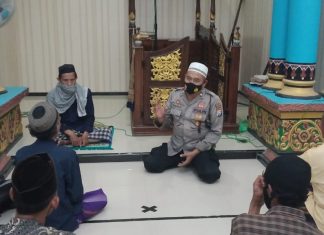 Subuh Berjama’ah, Polsek Rengel Polres Tuban Beri Pesan Kepada Jama’ah Untuk Disiplin Protokol Kesehatan