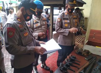 wacananews.com-polrestubanpoldajatim Polsek Widang melakukan pengecekan kondisi senjata api Inventaris Kantor dan yang dipinjam pakaikan kepada anggota, Senin (01/03/2021).Â