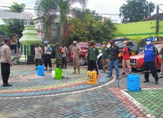 Polsek Plumpang Bersama Tim Gugus Covid-19, Laksanakan Penyemprotan Disinfektan Di Wilayah Plumpang.