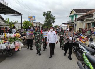 *Kapolsek bersama Forkopimka Widang Bagikan Masker di Pasar Desa Simorejo dan Juga Pengguna Jalan...