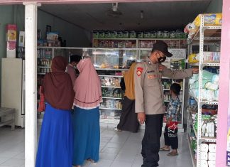 Door to Door Polsek Senori Polres Tuban Berikan Himbauan Pemilik Toko Terapkan Protokol Kesehatan