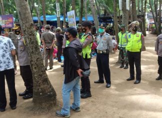POLSEK PALANG MELAKSANAKAN GIAT YUSTISI DAN HIMBAUAN PROKES DI TEMPAT WISATA PANTAI KELAPA KEL...