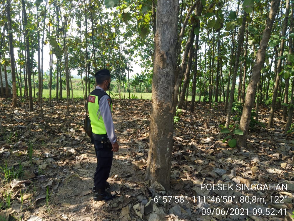 Dalam patroli tersebut personil Polsek Singgahan menyambangi petugas perhutani RPH Bakalan Bkph Bahoro guna melakukan koordinasi antisipasi keamanan hutan dan kebakaran hutan dan lahan.