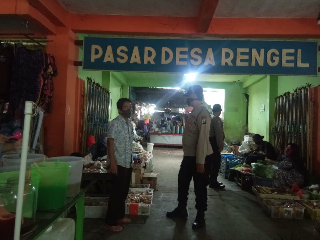 Pagi itu, petugas Polsek Rengel berjalan kaki di pasar tradisional tersebut sekaligus menyapa warga masyarakat yang sedang beraktifitas di sana. Petugas menyampaikan himbauan kepada para pengunjung pasar agar berhati-hati saat membawa dompet atau barang berharga lainnya.