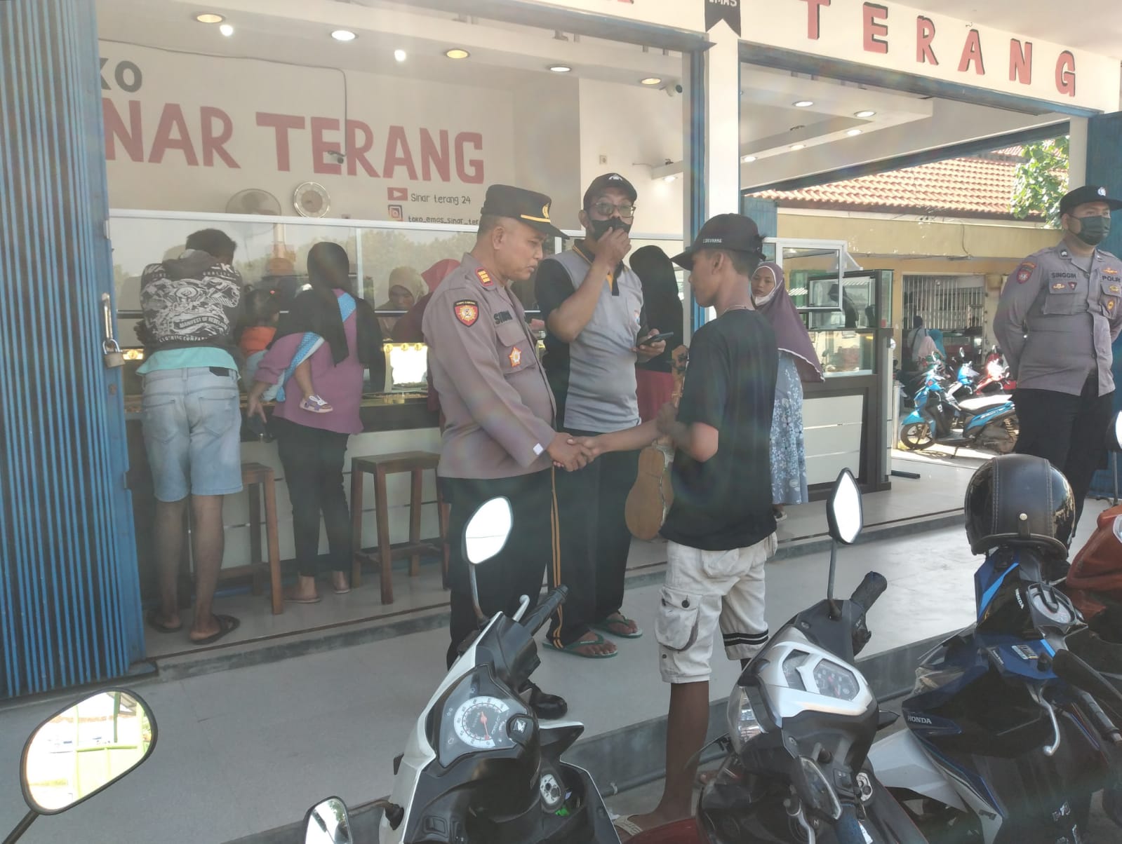 Dan dengan kehadiran Polisi Polsek Palang Polres Tuban, masyarakat merasa senang dan merasakan rasa aman dan nyaman melakukan aktifitas sehari hari di pertokoan Emas dan Indomart di wilayah Kecamatan Palang Kabupaten Tuban