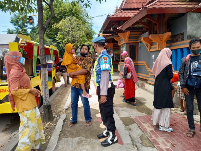 Mengantisipasi penyebaran Pandemi Virus Corona, Polsek Rengel Polres Tuban melaksanakan pemantauan penerapan protokol kesehatan di obyek wisata Goa Ngerong di Desa Rengel Kecamatan Rengel Kabupaten Tuban. Minggu, (21/03/2021).