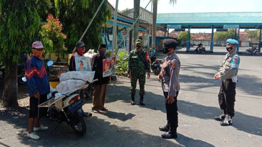 Dalam kegiatan tersebut anggota Polsek Jatirogo Aiptu Sumarno, S.H., bersama Bripka Kaswadi, S.H., serta Anggota Koramil Jatirogo Serda Abdul Sihab mengajak kepada masyarakat untuk selalu mematuhi protokol kesehatan dengan 5M yaitu mencuci tangan, memakai masker, menjaga jarak, menghindari kerumunan dan mengurangi mobilitas, untuk mencegah penyebaran Covid-19. “Kami berharap ditengah Pandemi Covid-19 ini masyarakat mematuhi himbauan pemerintah untuk selalu Disiplin Protokol Kesehatan” Tutur Sumarno