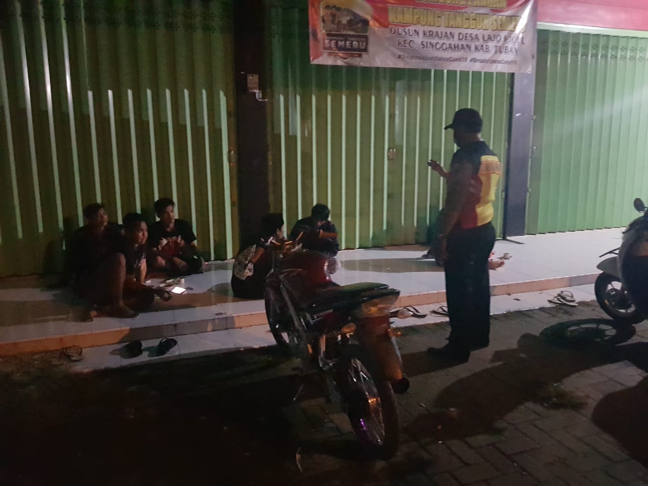 Seperti pada senin malam (1/2/21) personil Polsek Singgahan Polres Tuban melaksanakan kegiatan yustisi penerapan protokol kesehatan dengan sasaran pemuda yang sedang bergerombol/Nongkrong di depan pertokoan turut Desa Mulyoagung Kecamatan Singgahan Kabupaten Tuban.