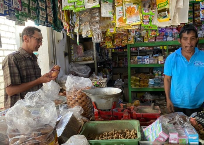 yang berjualan di pasar sambil mengecek harga bahan pangan yang sedang