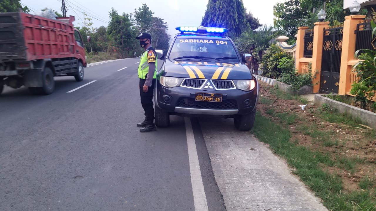 Dibawa kendalI Kanit Sabhara Polsek Singgahan Aipda Sumani dengan menggunakan mobil Unit patroli 801 personil Polsek Singgahan Polres Tuban melaksanakan giat pengaturan jalur utama di sepanjang jalur provinsi yang menghubungkan Kecamatan Jatirogo menuju Kabupaten Bojonegoro. Rabu sore (7/4/21)