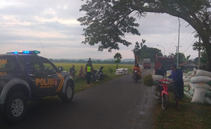 Oleh karenanya ketika melaksanakan patroli dalam rangka mencegah terjadinya tidak pidana dan pengaturan arus lalu lintas di tempat tersebut, kita juga memberikan himbauan kepada para petani untuk mengatur dengan baik karung-karung berisi gabah miliknya agar tidak memakan badan jalan yang dapat mengakibatkan terhambatnya arus lalu lintas, urainya.