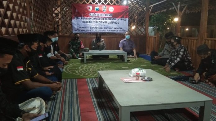 Dalam rangka menjaga Kamtibmas yang Aman dan Kondusif Kapolsek Jatirogo AKP Elis Suendayati, S.H., bersama Forkopimka Jatirogo melaksanakan silaturahmi dengan pimpinan ranting perguruan pencak silat yang ada di kecamatan Jatirogo. Kamis malam, 15/04/2021.