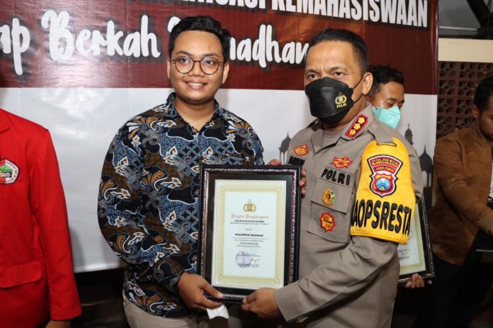 Dalam kegiatan tersebut dilaksnakan pernyataan sikap Jogo Banyuwangi oleh Elemen Mahasiswa dan penyerahan piagam penghargaan terhadap beberapa perwakilan mahasiswa. (Humas Polresta Banyuwangi)
