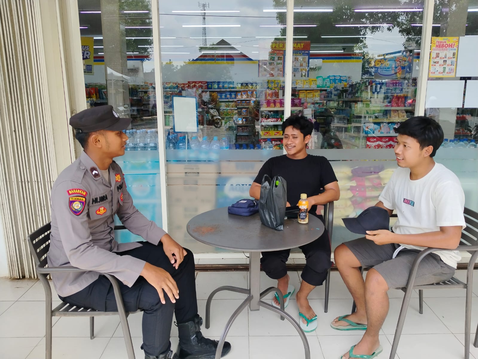 Senori – Bripda Hijira Lalfalla Santana, personil Polsek Senori Polres Tuban Polda Jatim yang sehari-hari bertugas sebagai anggota Bhabinkamtimas Desa Banyuurip Kec, Senori. Melaksanakan kegiatan sambang desa dilokasi yang biasa digunakan untuk nongkrong oleh pemuda Desa setempat, Minggu (7/12/2025) siang.