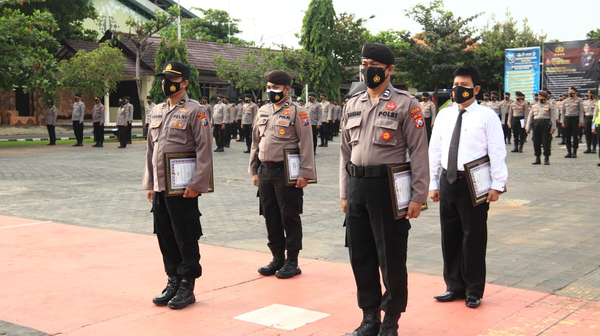 Pagi ini dalam Pelaksanaan Apel Comander wish, Kapolres Tuban AKBP Ruruh Wicaksono, S.I.K., S.H., M.H., memberikan penghargaan kepada 4 anggotanya yang beberapa hari yang lalu ikut mensukseskan pencanangan donor Plasma Konvalesen di Kabupaten Tuban, Senin (08/02/2021)