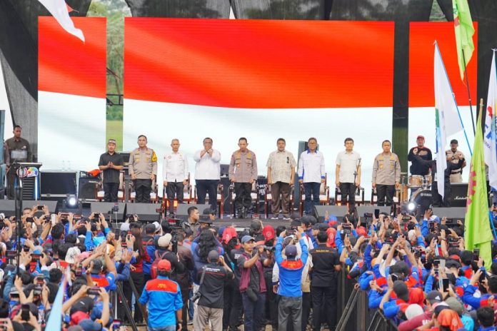 Hal tersebut disampaikan Sigit saat menghadiri undangan sekaligus memberikan sambutan di acara Apel Akbar Kebangsaan Buruh Indonesia di Lapangan Botanical Jababeka, Bekasi, Rabu (15/10/2025).